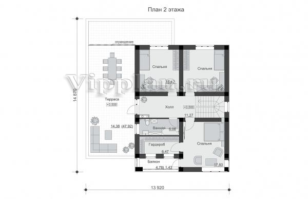 | Размеры дома: | 14.86м×13.92м |